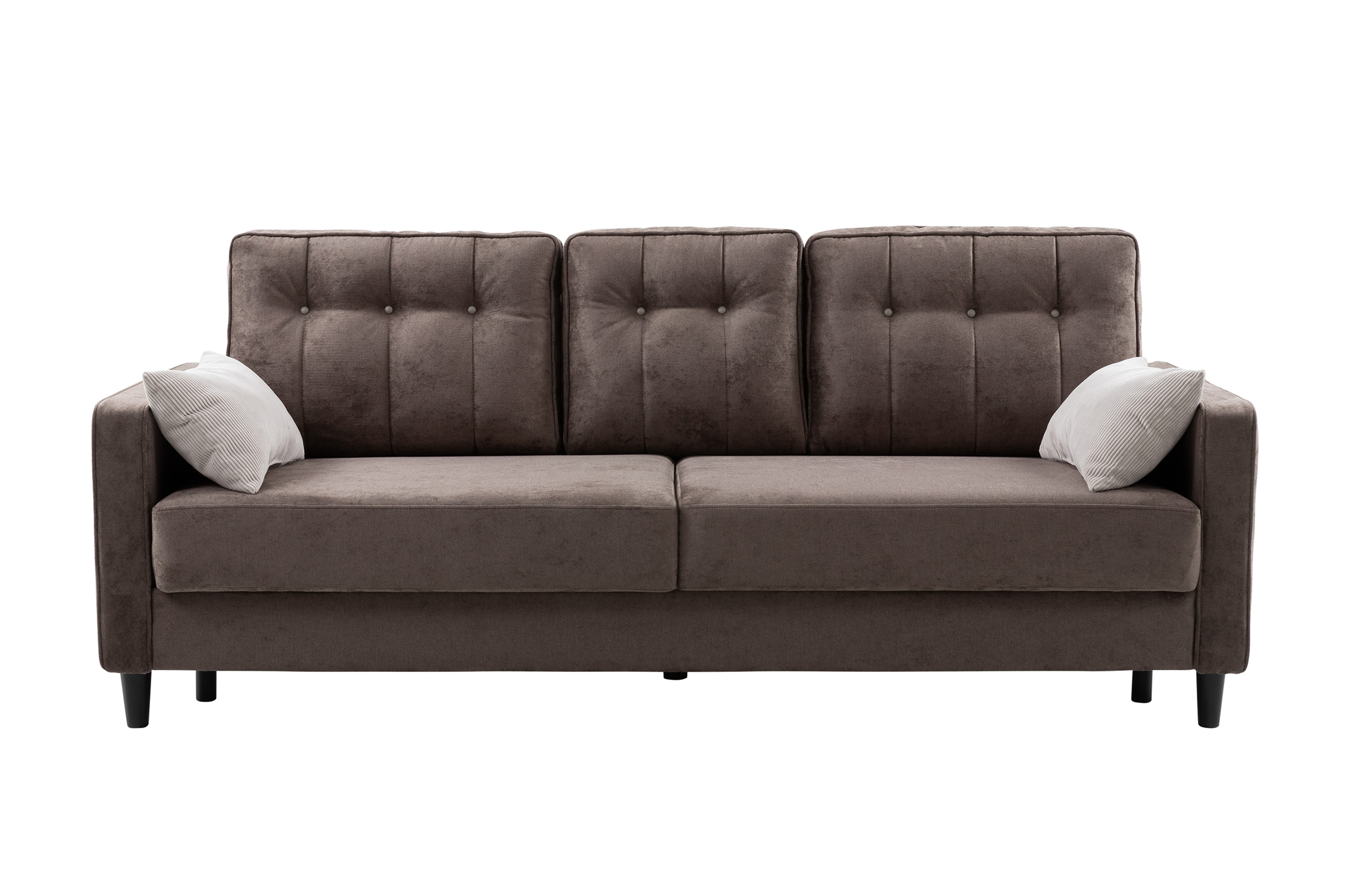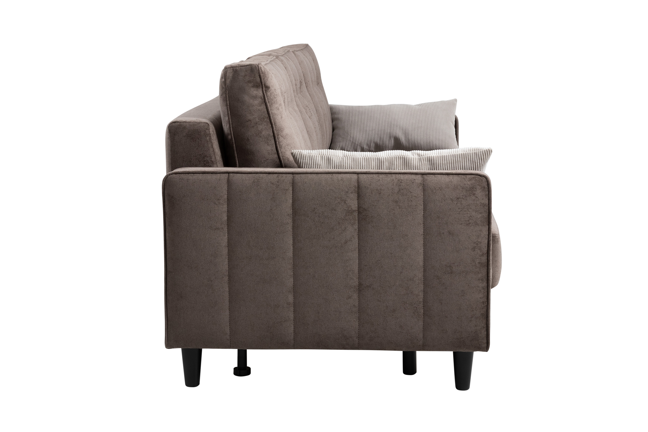 Размеры в разложенном виде (ШxГхВ): 219 x 144 x 62 см. Глубина сиденья: 53 см. Высота спинки: 42.5 см. Высота подлокотника от сиденья: 17 см. Материал опор: лакированное дерево. Цвет опор: черная эмаль. Высота опор: 10 см. Бельевой ящик с перегородкой по центру (2 отделения). Размер отделения(ДxШ): 78.6 x 68.8 x 12 см. Наполнитель подушек: крошка ППУ и полиэфирное волокно «шарики». Подушки имеют трапециевидную форму, с утолщением к низу для комфорта посадки. Кант по всему периметру подушек, декоративные утяжки металлическими пуговицами, вертикальная стежка. Максимально допустимая нагрузка: 80 кг на 1 сидячее место.